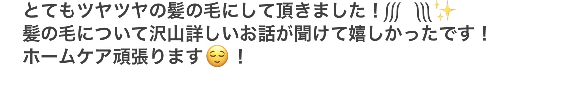 艶々になった髪の毛を何度も何度も触って鏡の前で【綺麗~】とテンションあがりながら喜んでいただきました。